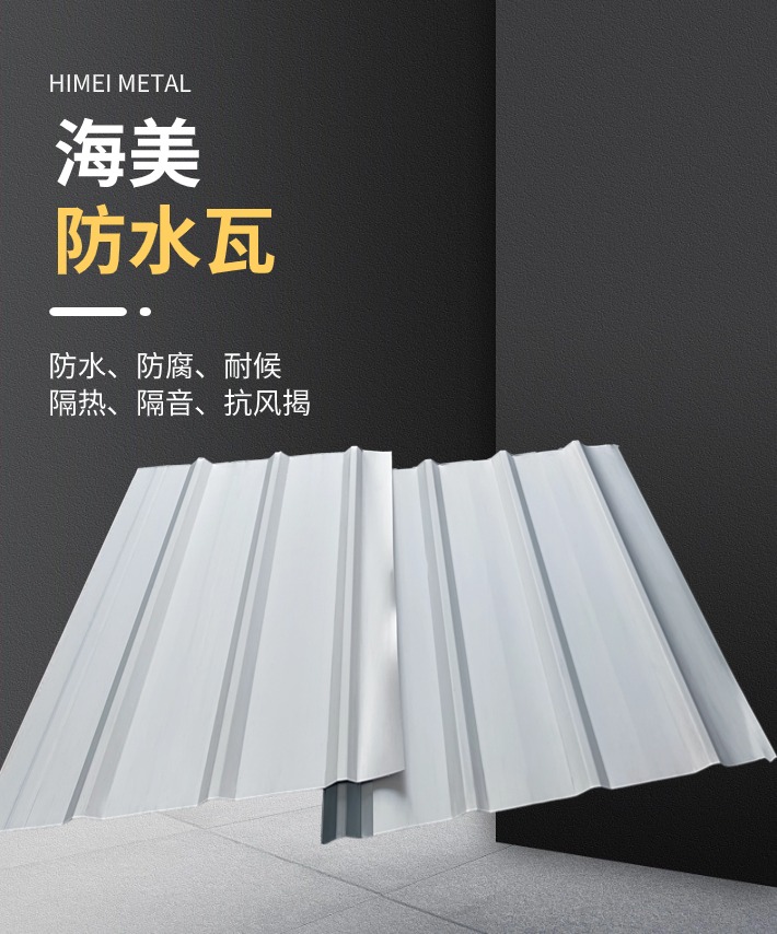 海美防水瓦以鋼板為基板,表面貼覆具有防水防腐功能的TPO/PVC卷材(熱塑性聚烯烴類防水卷材),是海美金屬推出的新一代防水防腐屋面建筑材料。海美防水瓦主要特點就是在各類環境下不易生銹不易漏水,使用熱風焊接進行相連,覆蓋全部裸露的縫隙,在使用過程中可以達到蓄水不滲透的效果,防水效果好,同時還有較好的抗風揭性能和耐老化性能,為鋼結構建筑屋面提供了長久的防護。